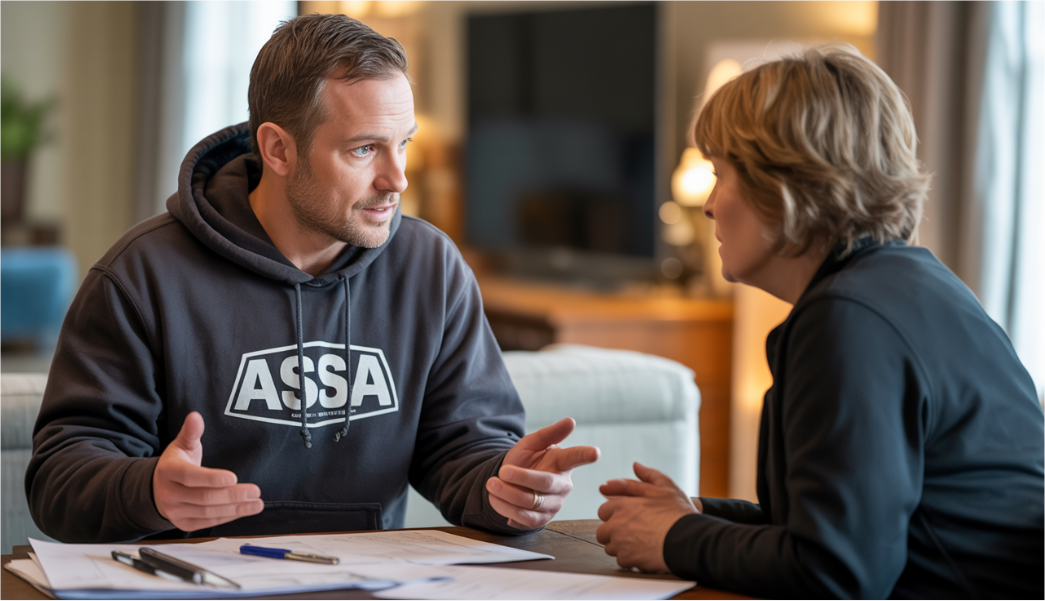 📌 En la imagen de arriba Esteban, contratista certificado de ASSA, le presenta su estimado a doña Margarita.